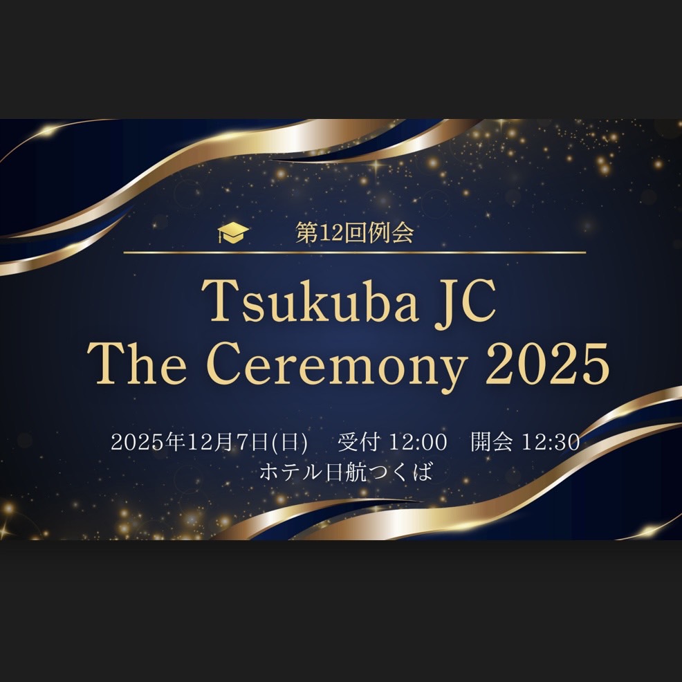 第12回例会「Tsukuba JC The Ceremony 2025」日時:2025年12月7日(日)時間:受付12:00 開会12:30会場:ホテル日航つくば 特に活動的に貢献されたメンバーを称え褒賞を行います。また、卒業生に対して感謝の意を表すともに、現役メンバーへ想いを紡いでいく事業とします。